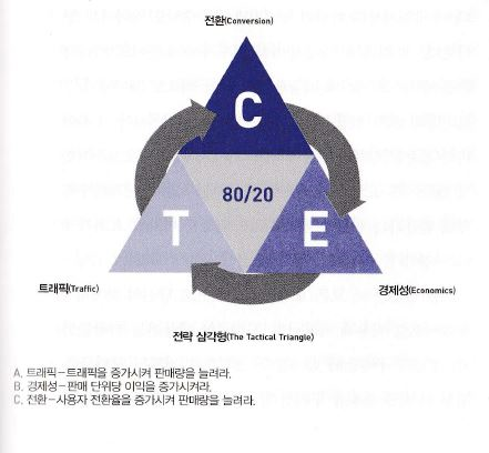 페리마셜의 '트레픽-경제성-전환 삼각형'을 이용하면 좀더 쉽게 이해할 수 있다. 세 요소들 중 어떤 것이라도 증가시킴으로써 우리는 사업에서 창출되는 수익의 양을 증대시킬 수 있다